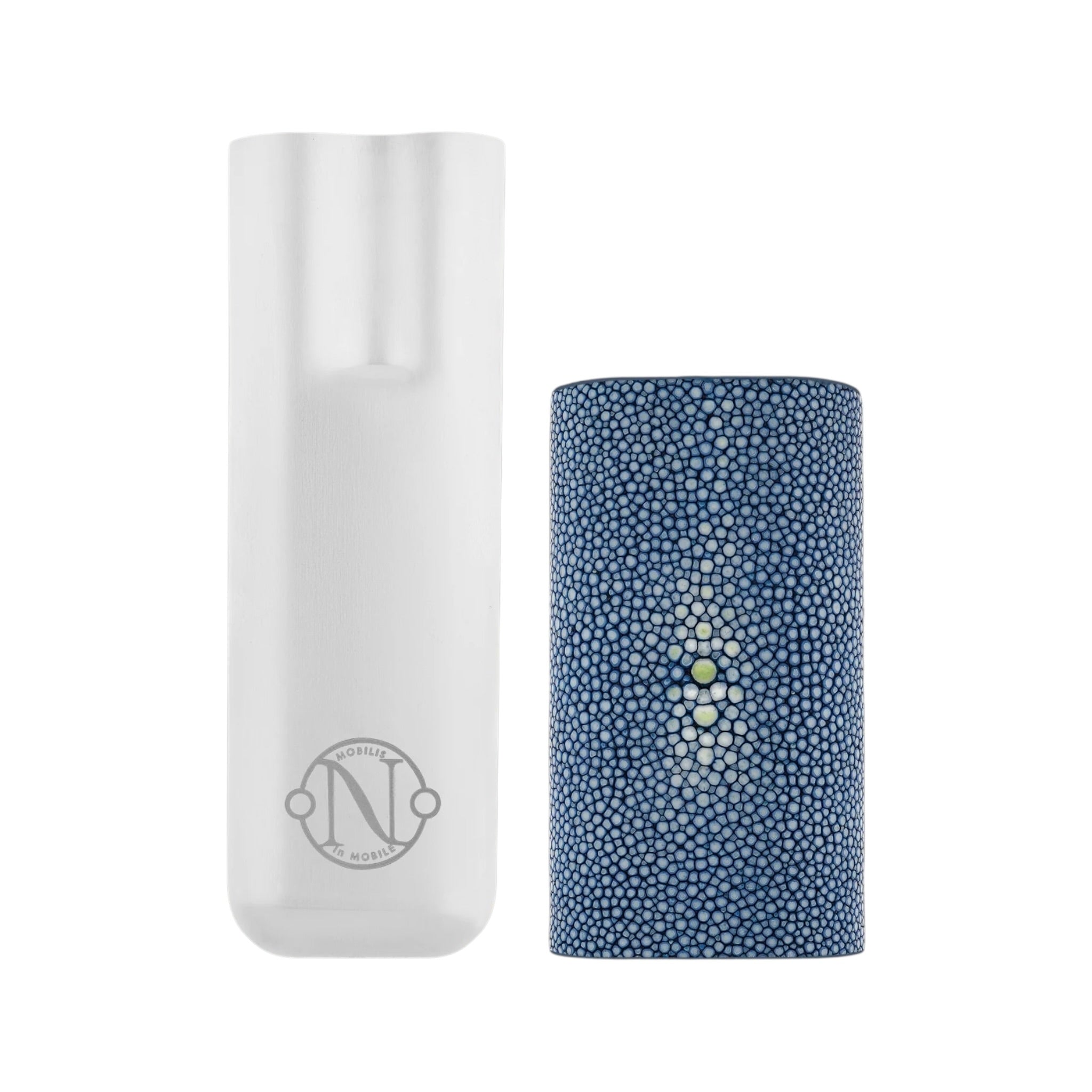 Case for 2 cigars. Stingray leather. Chrome base with engraved Nautilus logo.