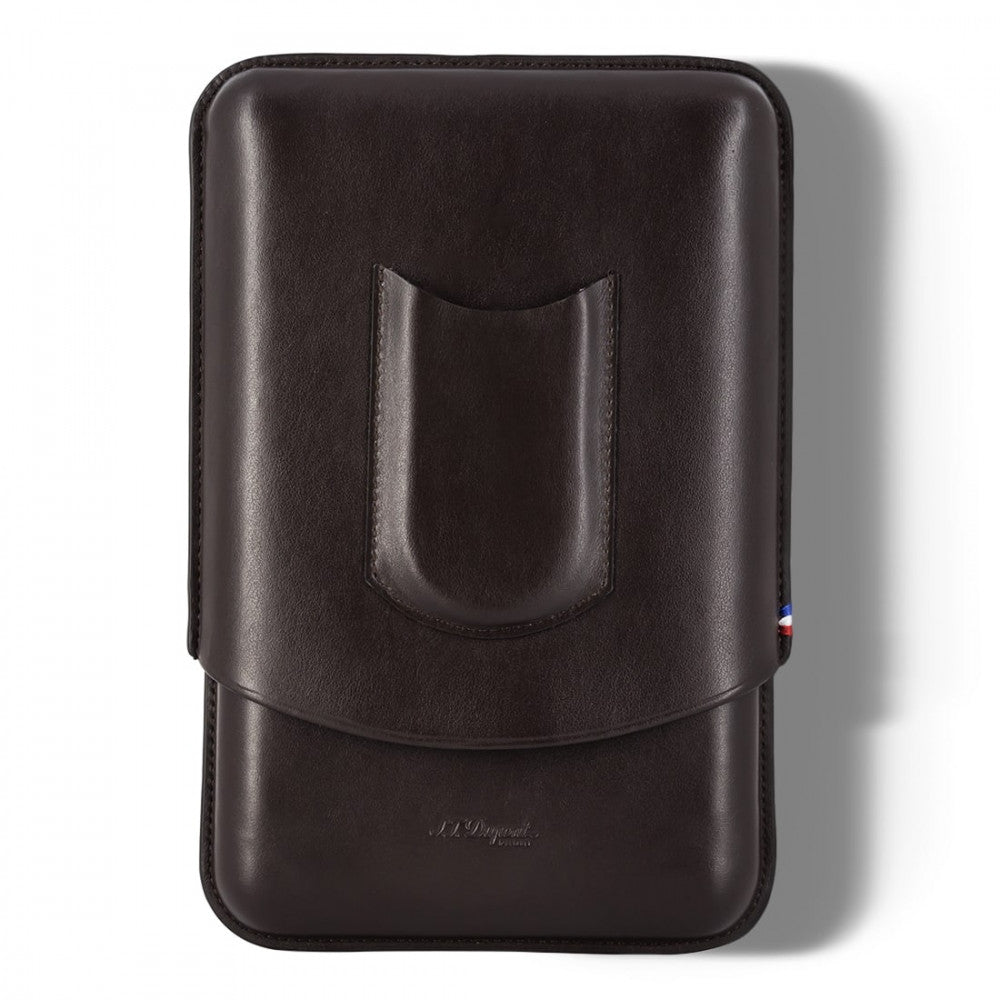 About this cigar case: This cloudy brown triple cigar case has been created as part of S.T. Dupont's 'Atelier' collection. Keep your favourite cigars close to you whilst you travel with this brown case. This cloudy brown Atelier cigar case has been made out of smooth cowhide. This Atelier cigar case can hold up to 3 cigars of your choice. The small front pouch has been designed to house a small flat cigar cutter. Have this brown Atelier cigar case foil embossed on the day of purchase. Presented inside a black gift box, this Atelier brown triple cigar case will be a great gift for a loved one.