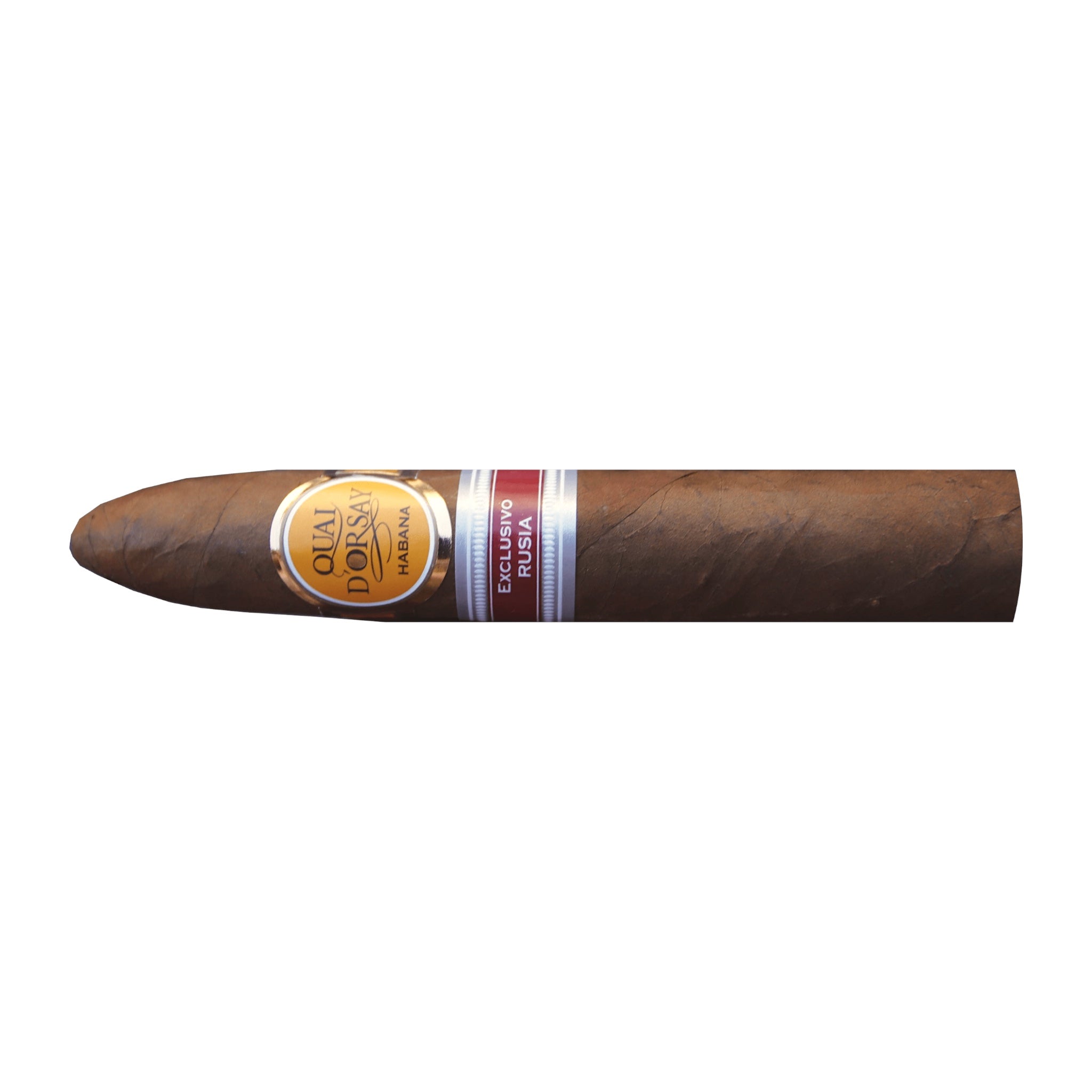 About this cigar: Experience the rich tradition of Cuban cigars with Quai d'Orsay Acuerdo Edición Regional Rusia. This handmade petit pyramid boasts a 52 ring gauge and a just under five inch length, making it the perfect choice for a quick yet satisfying smoke. Featuring a perfectly balanced blend of all-Cuban tobaccos for filler, binder, and wrapper, this cigar offers a complex flavor profile with creamy notes, hints of spice, and earthiness. Its unique petit pyramid shape provides an intriguing smoking experience, releasing a variety of inviting and sophisticated aromas and flavors that will appeal to both seasoned aficionados and newcomers.