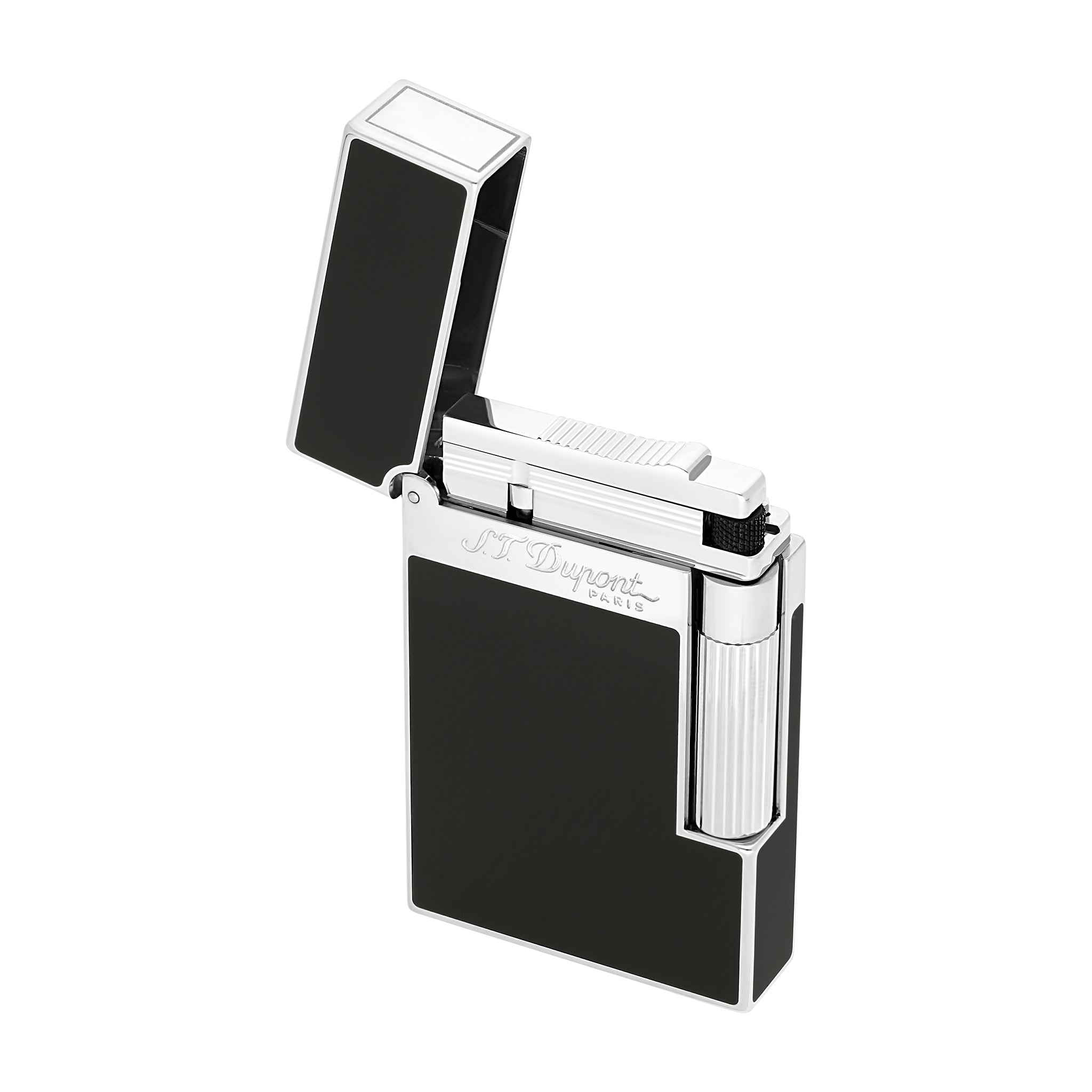 The quintessential S.T. Dupont lighter. Its famous "cling" upon opening is a hallmark among connoisseurs. Its collection boasts clean lines, adorned with noble materials and equipped with a double yellow flame. With classic elegance, this lighter is coated in natural black lacquer with palladium accents. Associated lighter flint: black (REF 900600). Associated gas refill: yellow (REF 900432). Lighter delivered empty of gas, refill sold separately.
